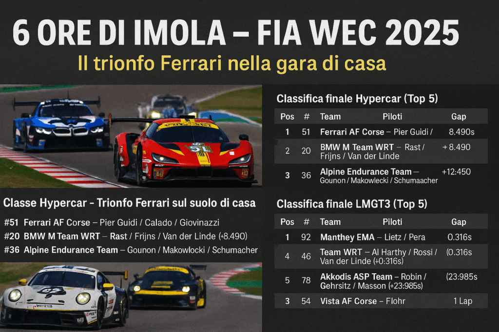 Il 20 aprile 2025, l’Autodromo Enzo e Dino Ferrari di Imola ha ospitato la seconda tappa del Campionato Mondiale Endurance FIA (WEC), offrendo una gara intensa e ricca di colpi di scena.